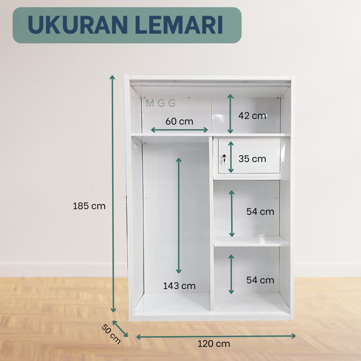 Lemari Pakaian Besi 2 Pintu Sliding Minimalis 1200x90x50cm Lemari Baju Sleding Full Plat Besi