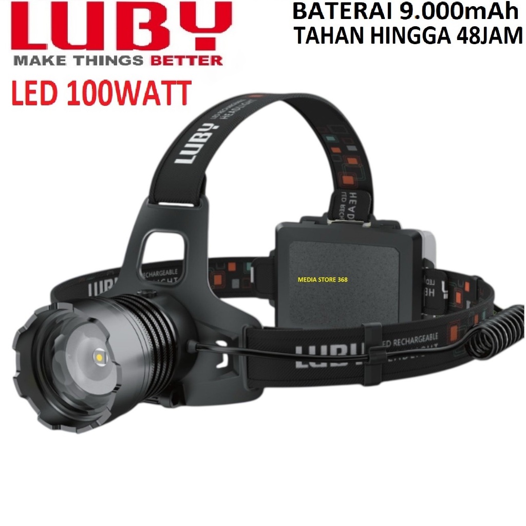 SENTER KEPALA ZOOM LED 100W LUBY L-2926L - CAHAYA TERANG - BATERAI 9.000MAH - JARAK JAUH - BISA PB