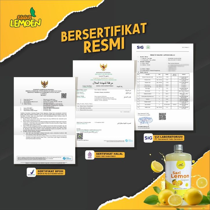 BPOM Suur Lemoen - Sari Lemon 250ml Murni 100% Air Lemon Untuk Detox - Halal