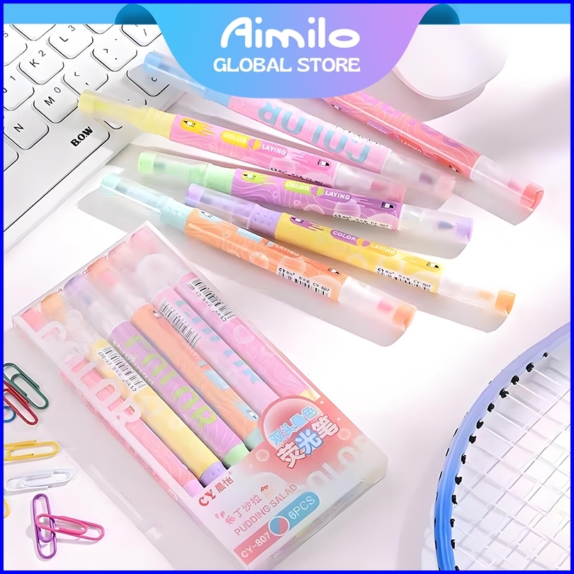 Aimilo Stabilo Pastel 1 Set Menumpuk Stabilo Highlighter 2 Sisi 6 Pcs 12 Warna