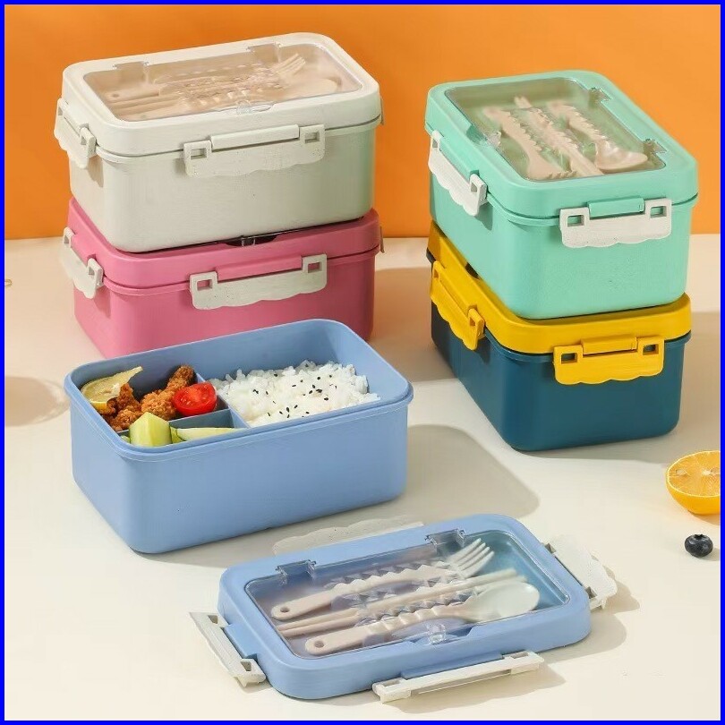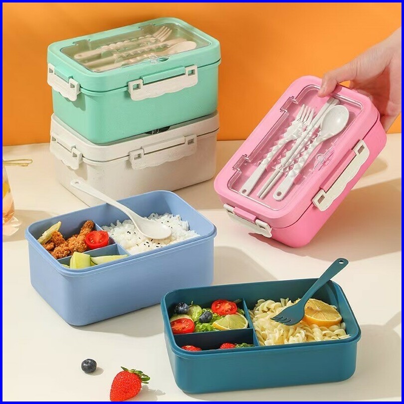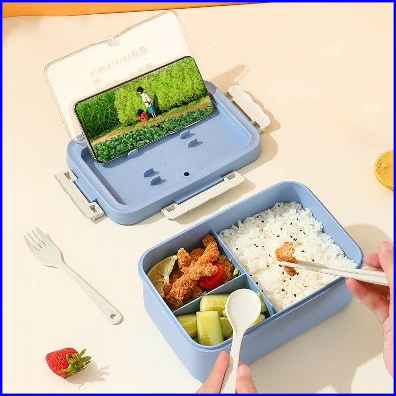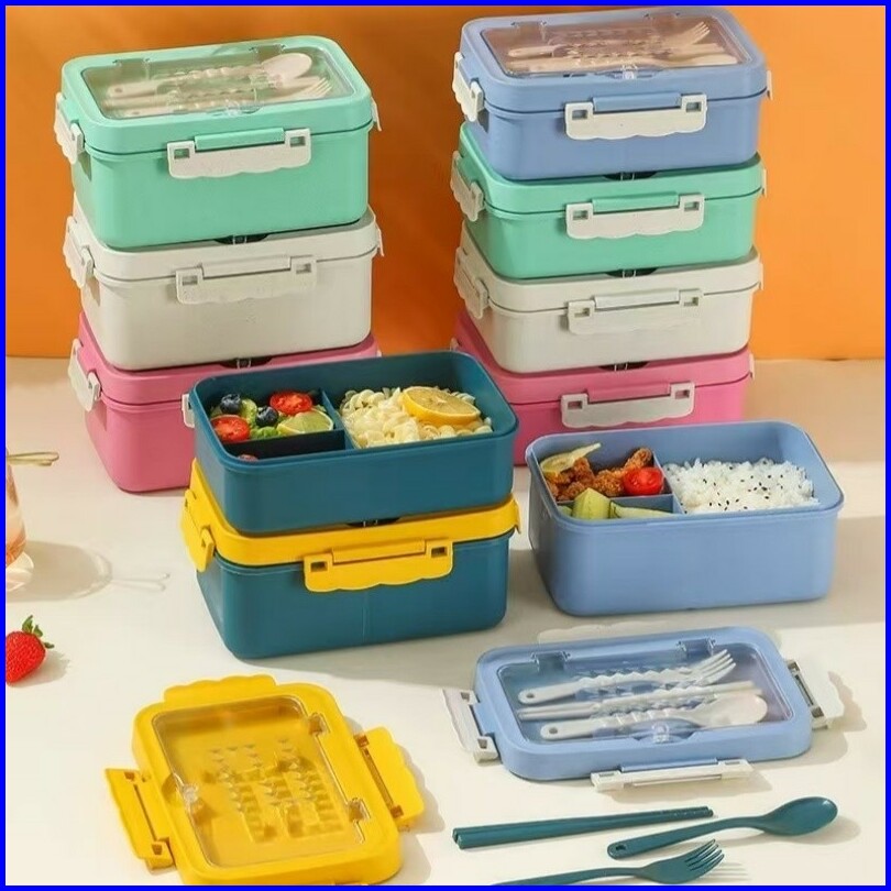 Fivevoo Set Kotak Bekal Makan 1000ml 4 In 1 Lunch Box Dengan Sendok Set Alat Makan Kotak Bekal Sekolah Anak