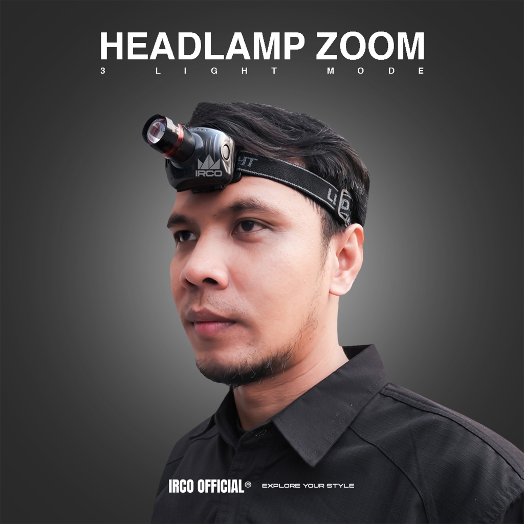 IRCO HEADLAMP ZOOM OUTDOOR WATERPROOF BATERAI LEPAS A3 - SENTER KEPALA LED FOKUS ANTI AIR BATRE AAA