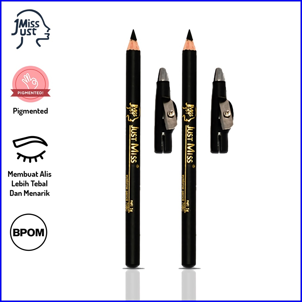 Just Miss Pensil Alis Dengan Serutan 1 G Paket Hemat Combo 2 Pcs Eyebrow Pencil Pigmented Cmb02 Black