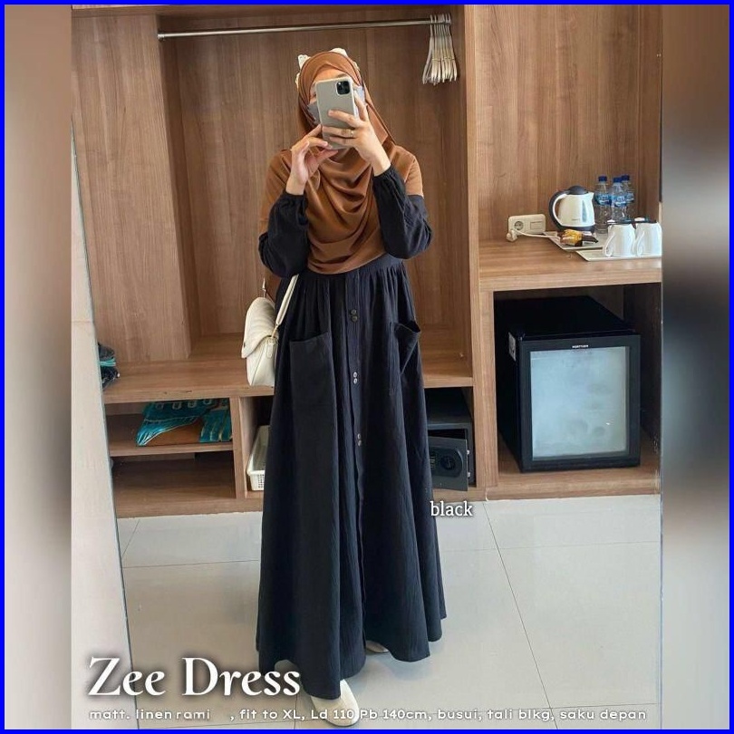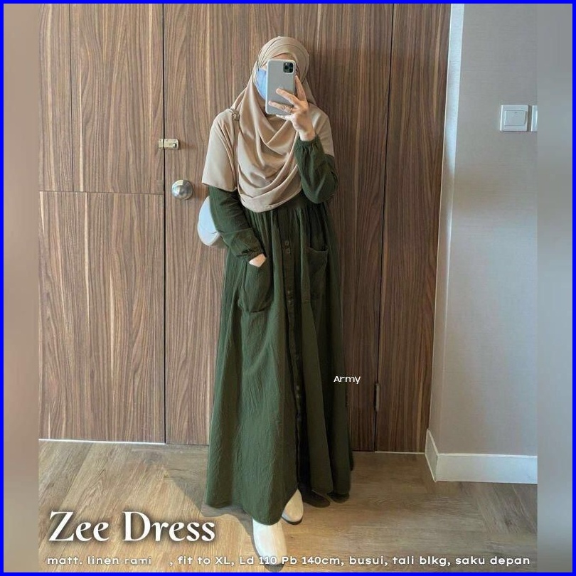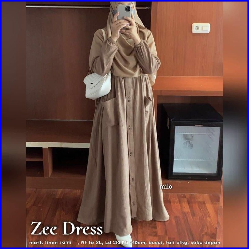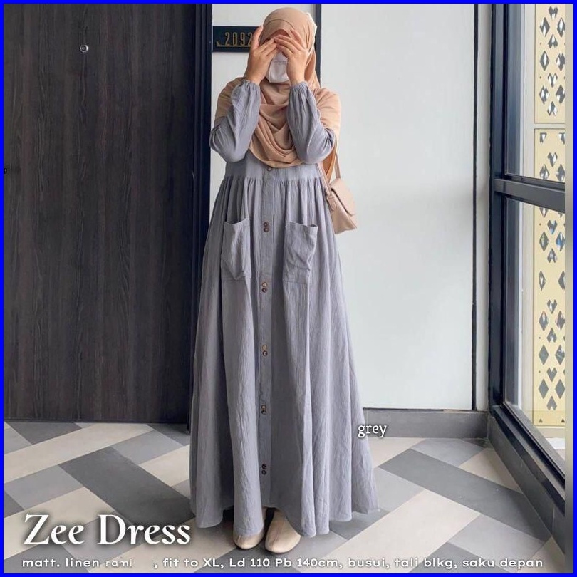 Femes Shani Dress Maxy Wanita Muslim Matt Linen Rami Polos Basic Premium