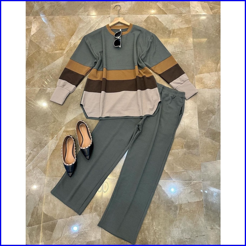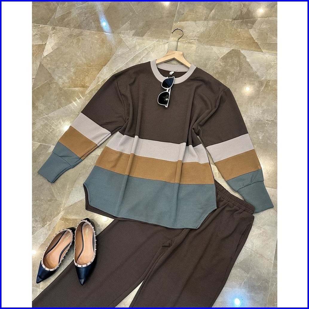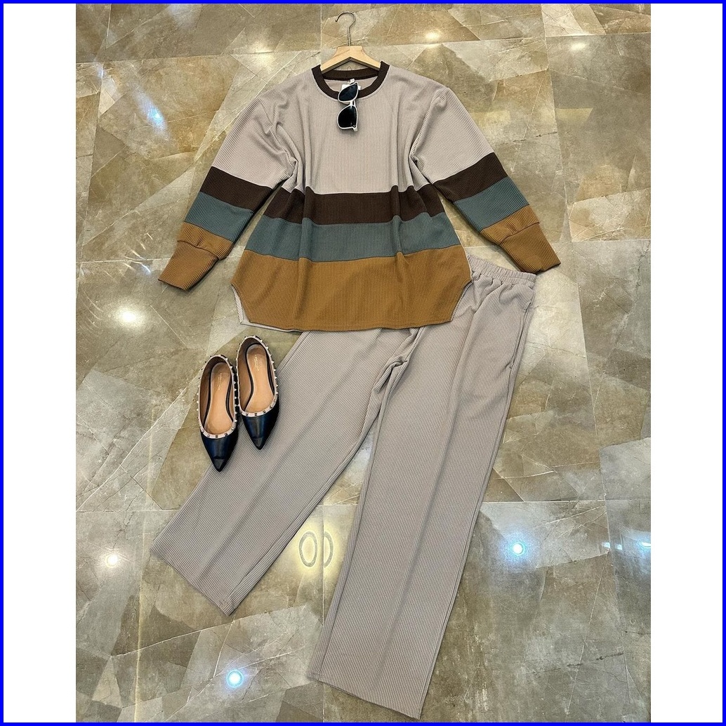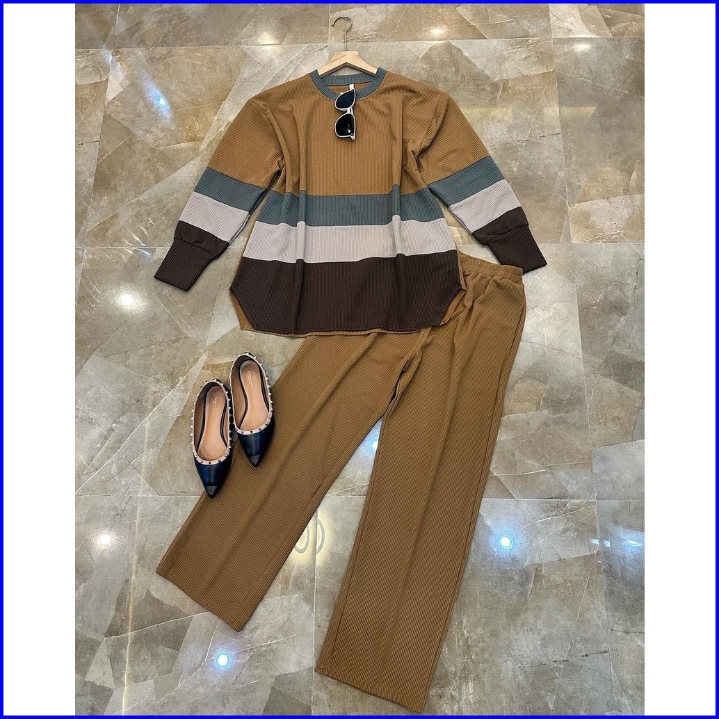 Femes Auliya One Set 2in1 Setelan Wanita Muslim Matt Caramel Knit Polos Basic Ootd Casual Daily