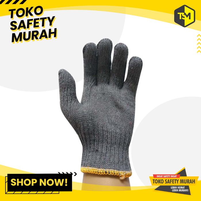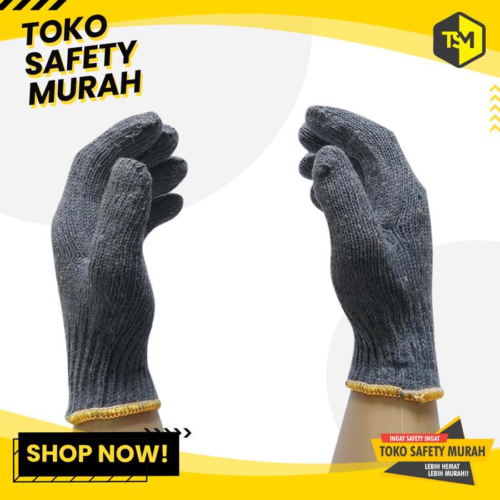Sarung Tangan Kerja Rajut Benang 6 Abu Buldozer Murah List Kuning
