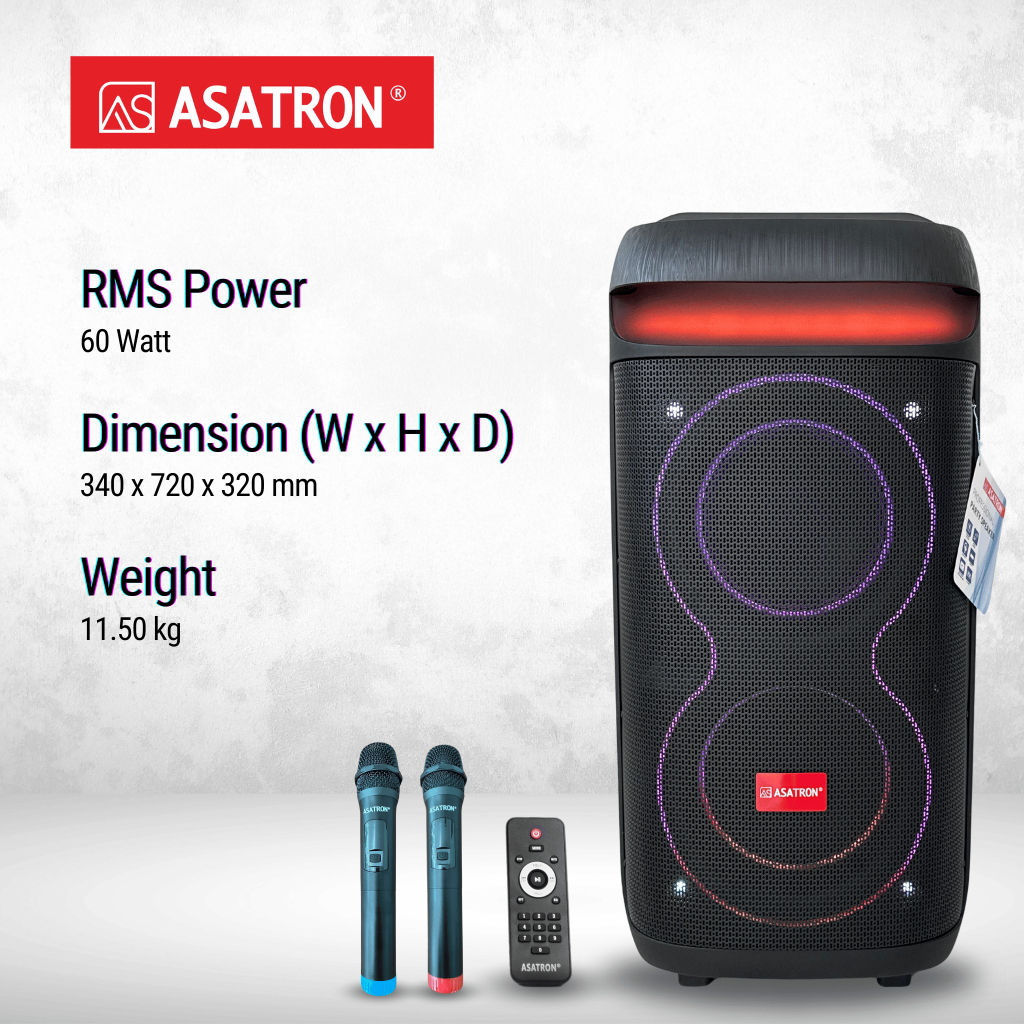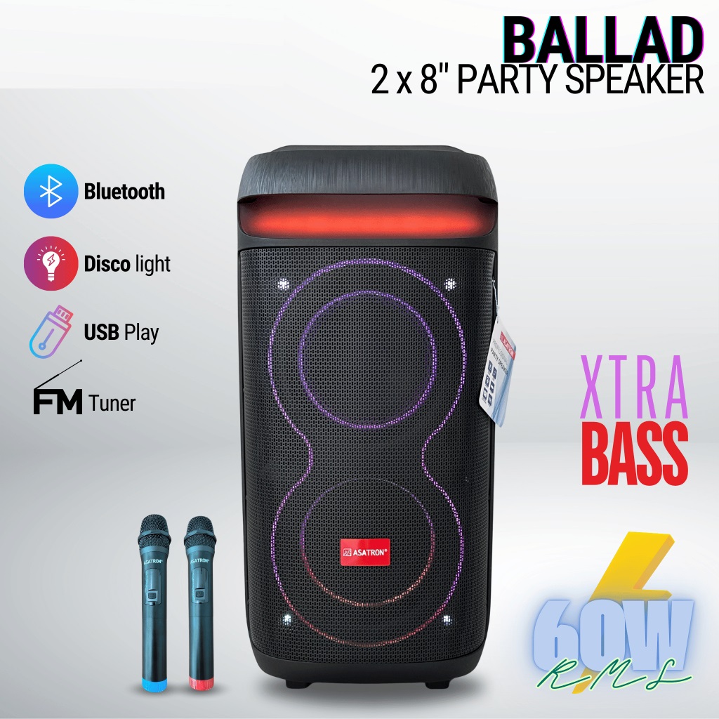 Asatron Ballad Dual 8 Inch Bluetooth Party Speaker with 2 Wireless Mic