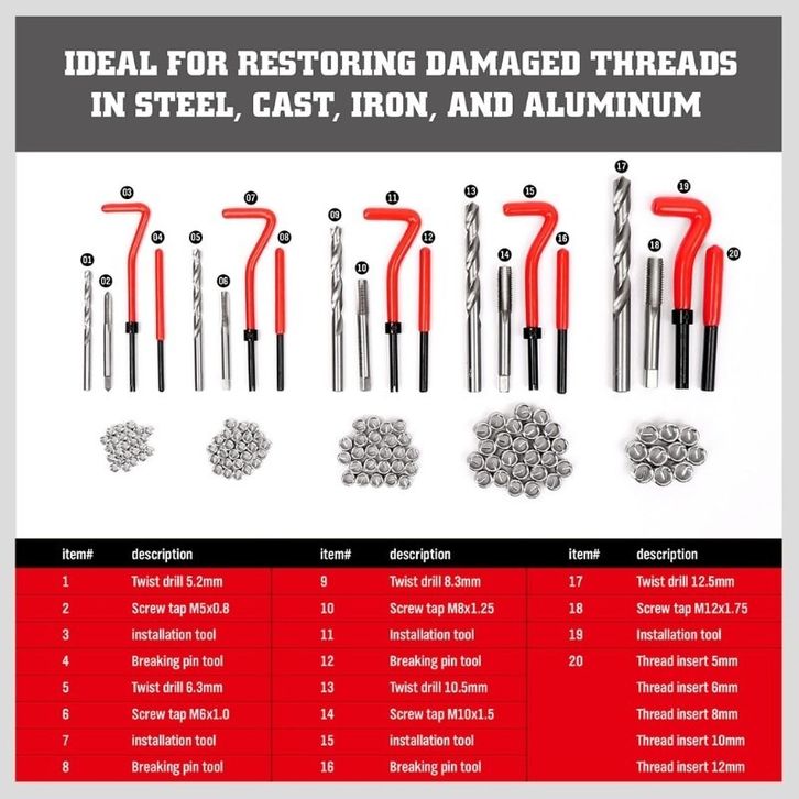 Thread Repair Kit 131 in 1 SP / Recoil Helicoil Busi Motor Ulir / Car Drat Slek M5 M6 M8 M10 M12