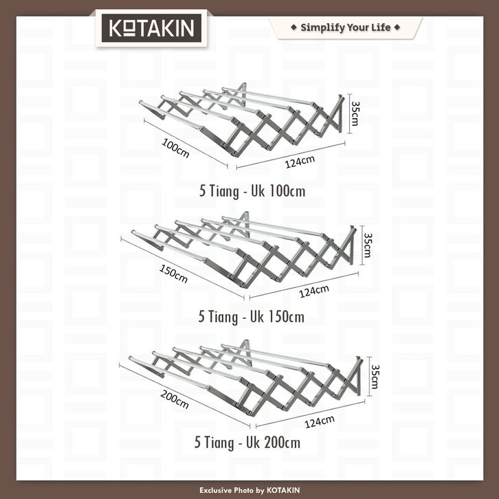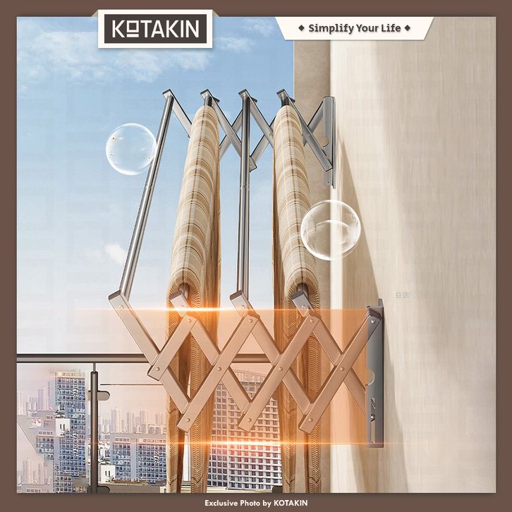 KOTAKIN Jemuran Baju Tempel Dinding Rak Jemur Pakaian Basah Lipat Tembok Kuat Stainless Anti Karat 3 4 5 Baris 100 200cm
