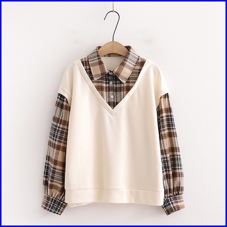 Femes Kimberly Flanel Blouse Combi Fold Terry Shirt Atasan Kemeja Flannel Top Muslim Wanita Premium Korean Style