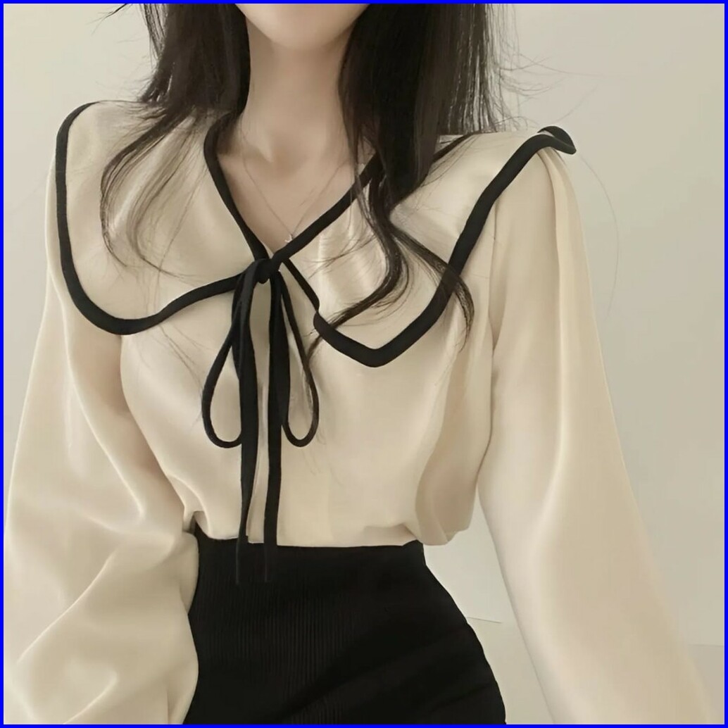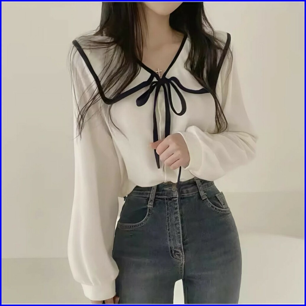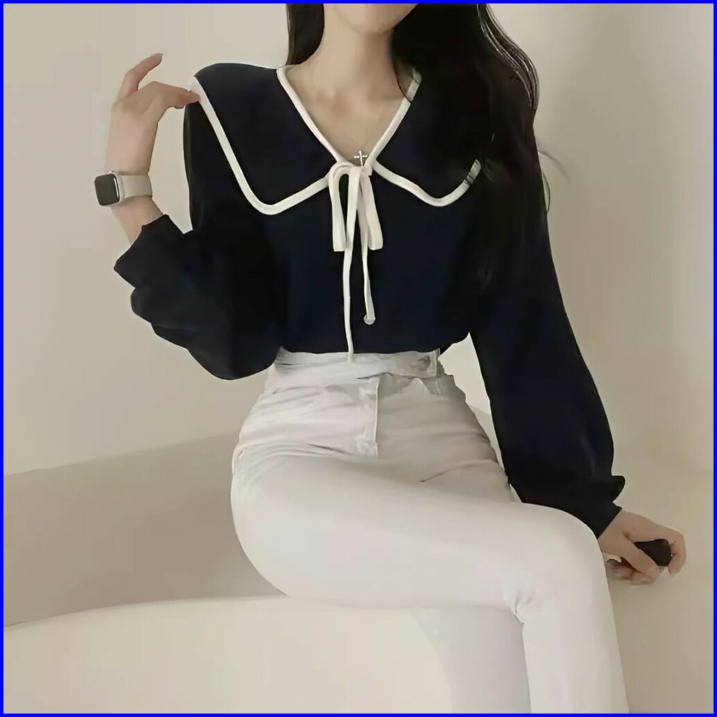 Femes Sailor Top Blouse Korean Matt Cringkle L Atasan Wanita Kekinian Casual Daily Ootd Korean Style