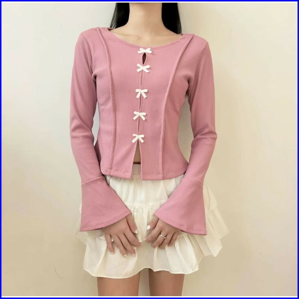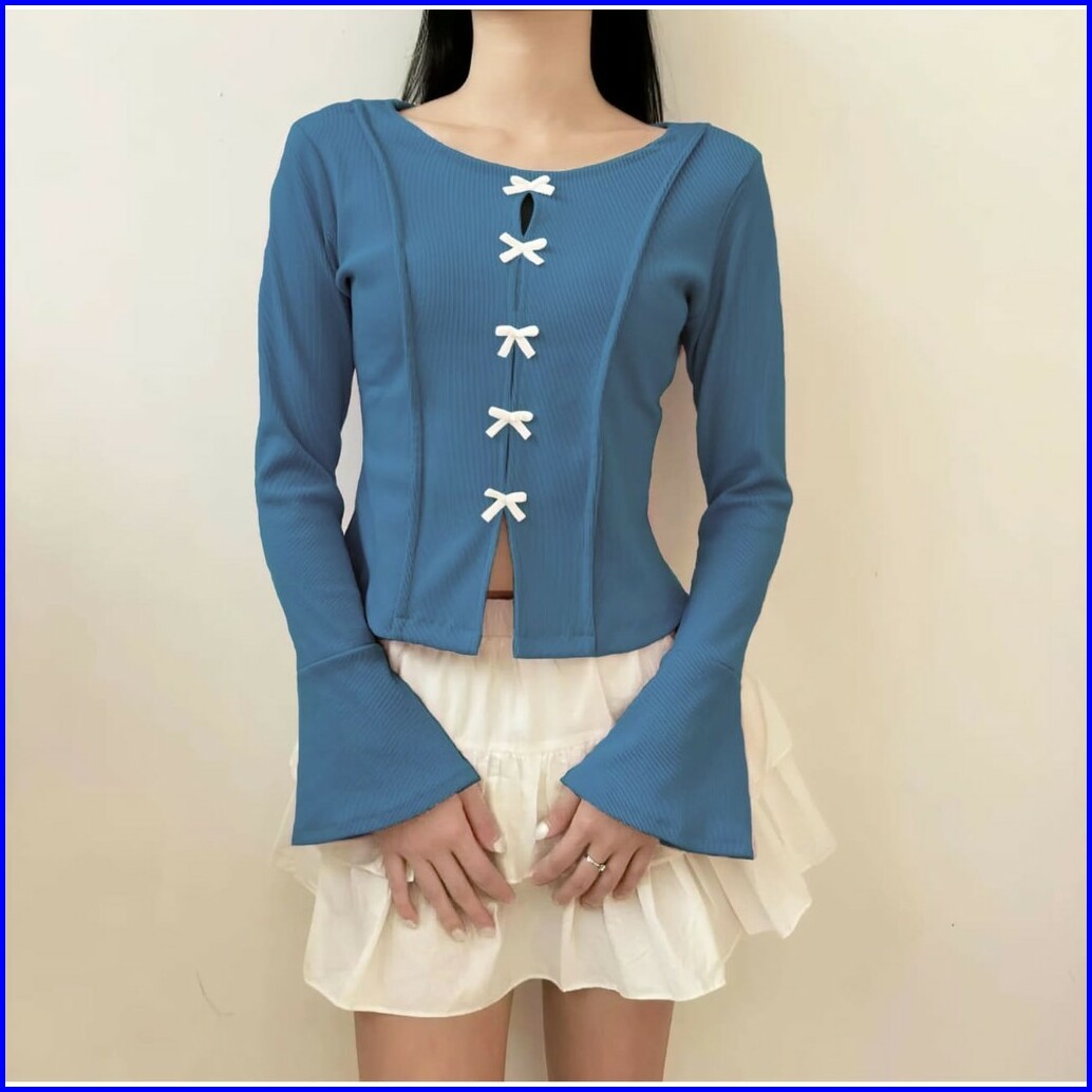 Femes Leora Blouse Atasan Bow Top Korean Style Wanita Remaja Ootd Casual Daily Premium