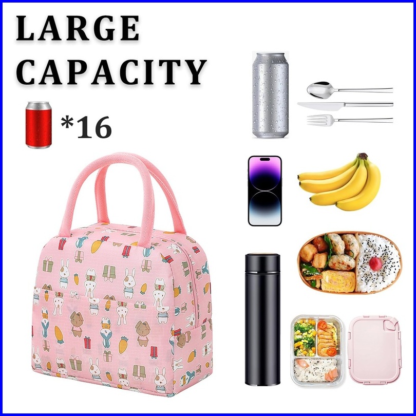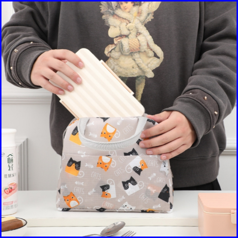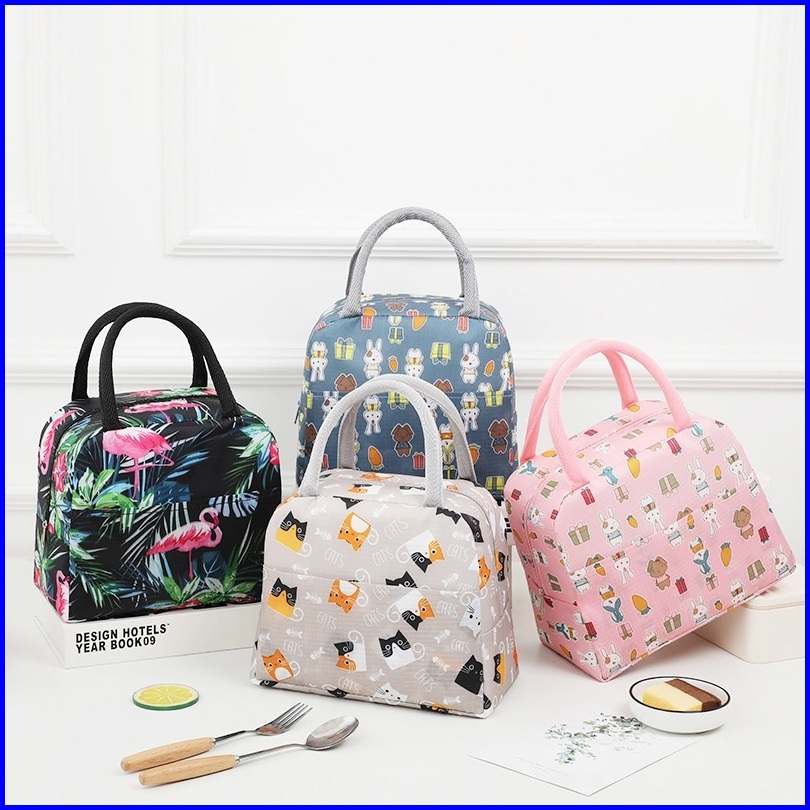 Fivevoo Tas Makan Siang Pola Lucu Tas Bekal Botol Kotak Makan Anak Lunch Box Kemasan Makanan Lunch Bag