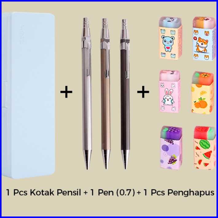 Fivevoo Combo Set 1 Pcs Kotak Pensil 1 Pensil 0.5 0.7 1 Pcs Penghapus Paket Alat Tulis Bundling Sekolah Peralatan Sekola