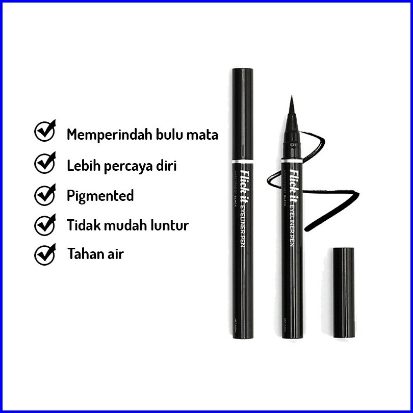 Just Miss Eyeliner Spidol Halal Bpom Tahan Air 0.6 Ml Flick It Eyeliner Pen Waterproof Anti Air Jus Black