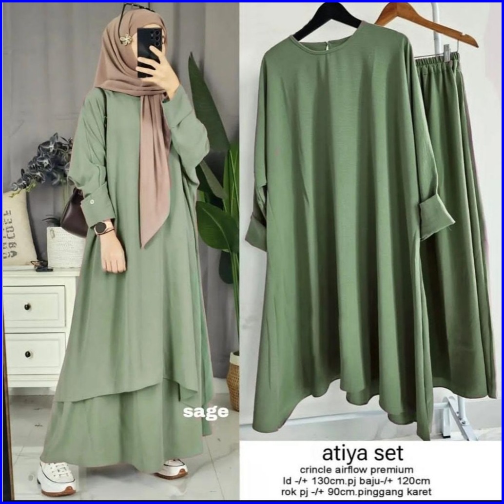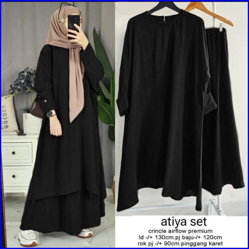 Femes Theana One Set 2in1 Wanita Muslim Matt Cringkle Airflow Polos Basic Ootd Lebaran Casual Daily