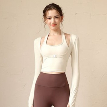 FITLY 1142 Atasan Olahraga Wanita Lengan Panjang Kaos Baju Gym Bantalan Dada Bawaan
