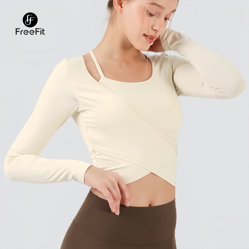 FreeFit Kaos Olahraga Wanita Pakaian Yoga Wanita Atasan Olahraga Lengan Bawaan untuk Pilates Gym