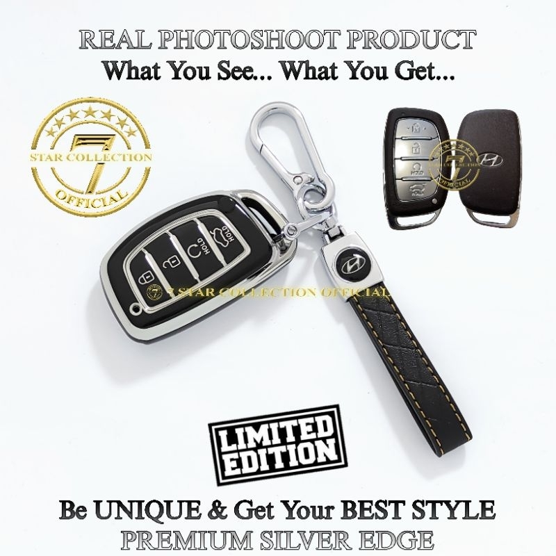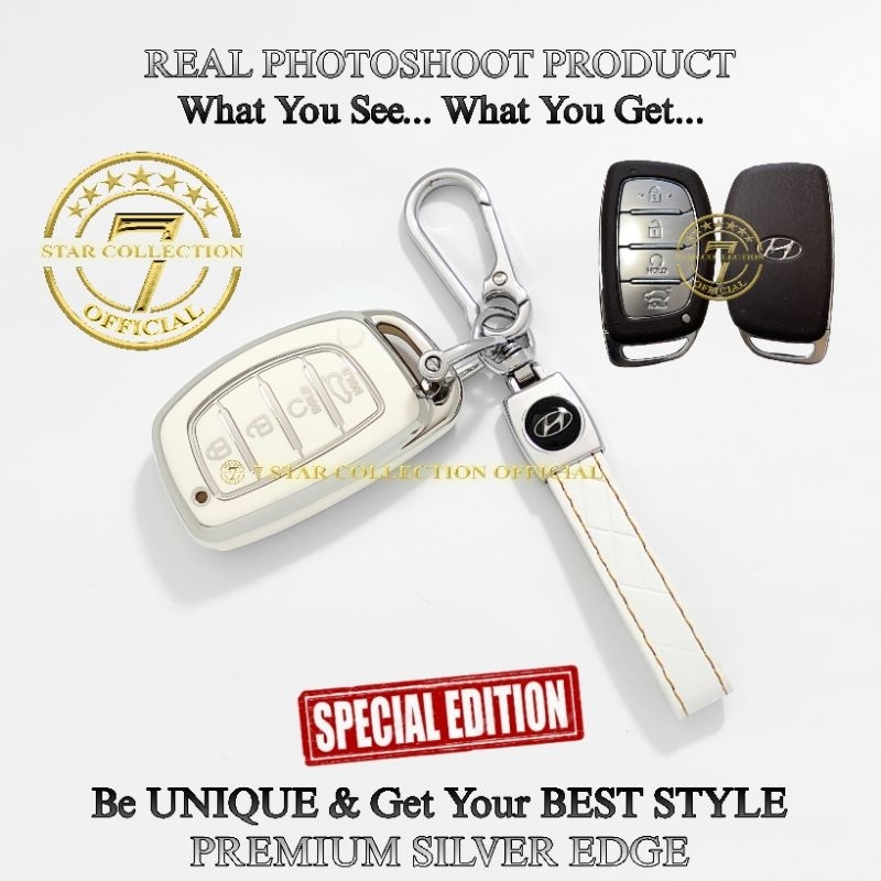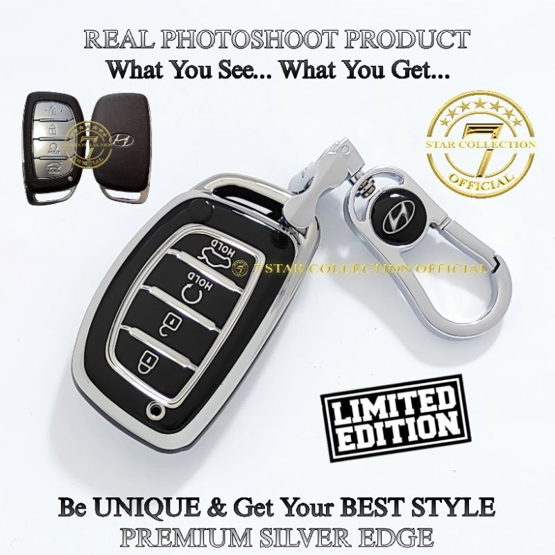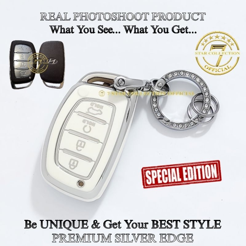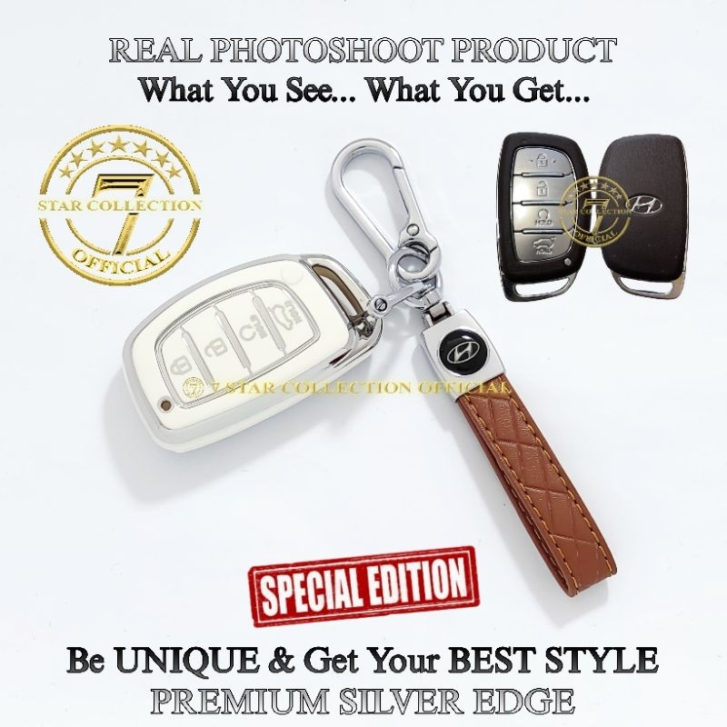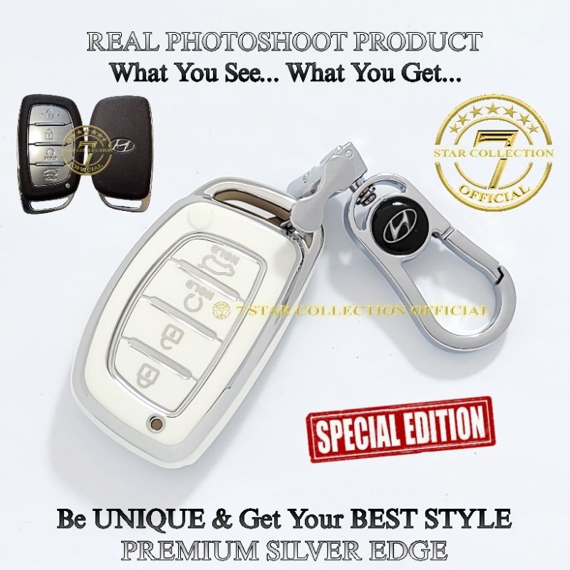 Cover Case Sarung Kunci Remote Mobil Hyundai STARGAZER CRETA New Hyundai VENUE Premium Silver Edge