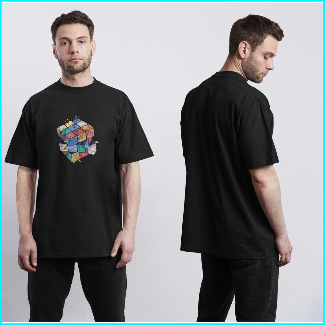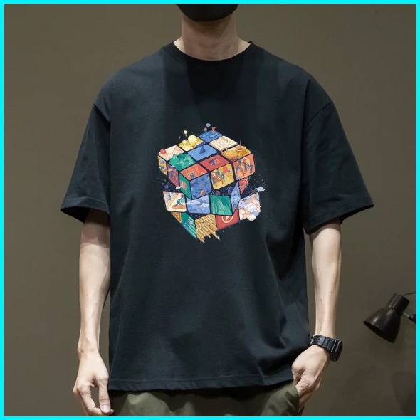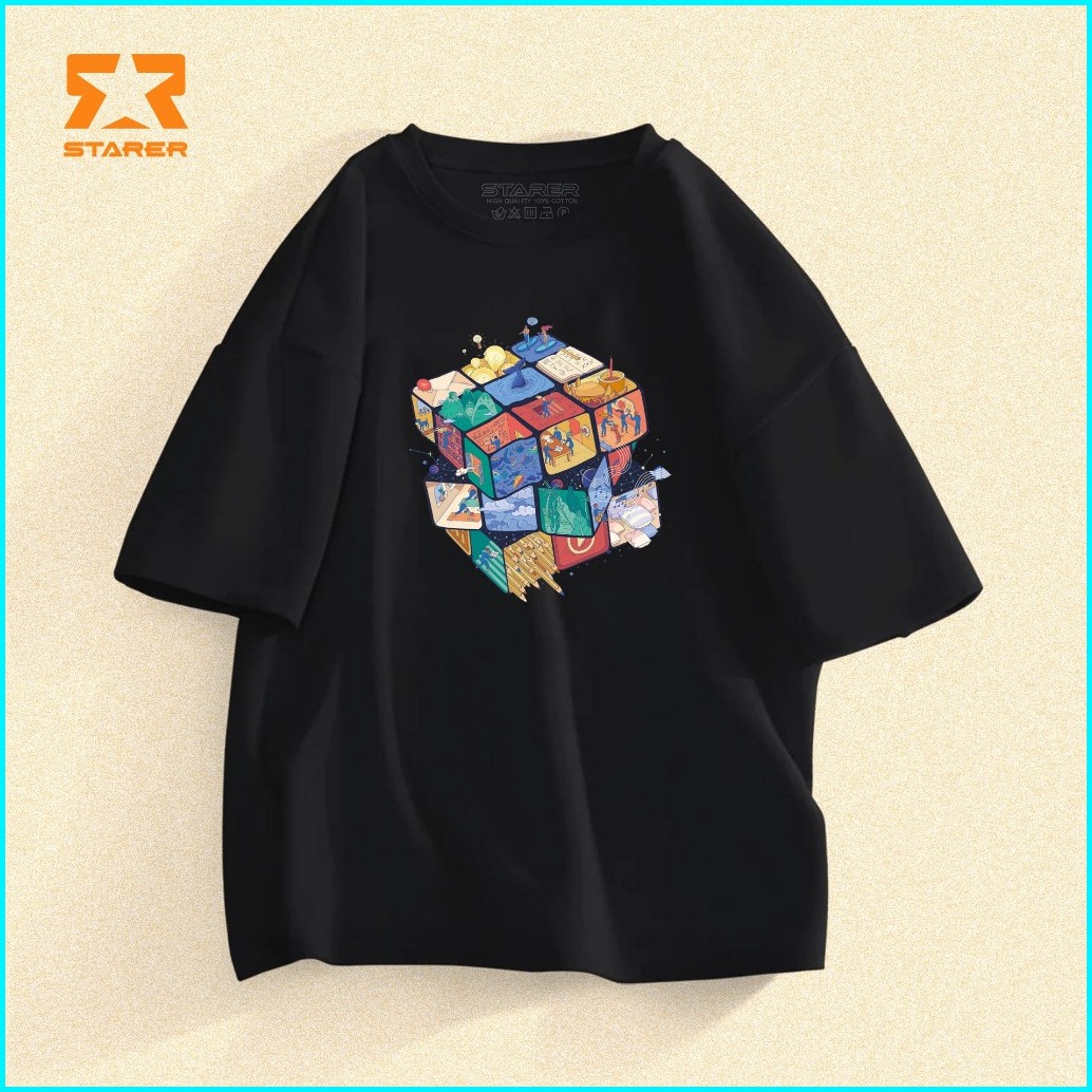 Starer Kaos T-shirt Unisex Pria Wanita Distro Lengan Pendek Basic Polos Baju Sablon Kubus Rubik 0098
