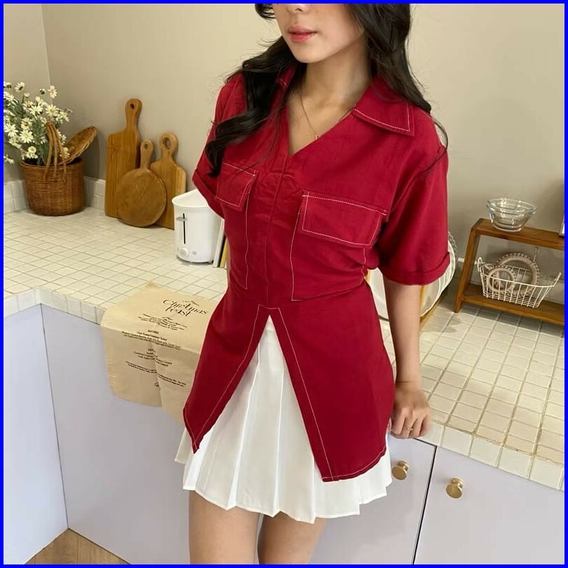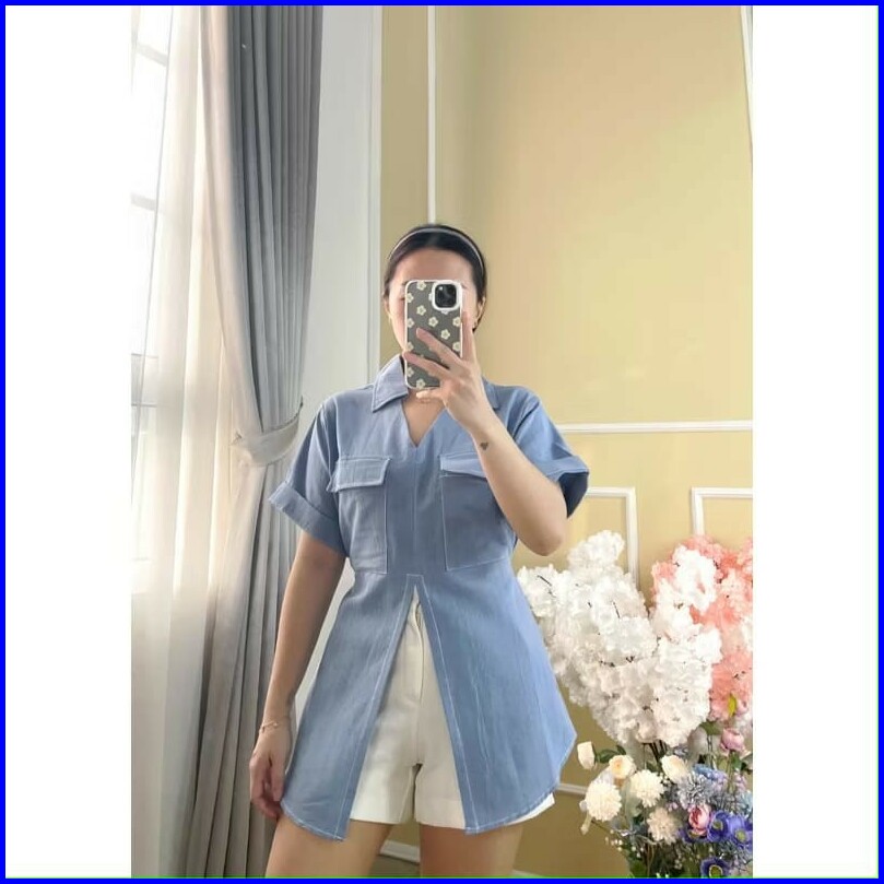 Femes Vero Top Atasan Pocket Wanita Fit To Xl Besar Matt Katun Linen Polos Ootd Korean Style Premium