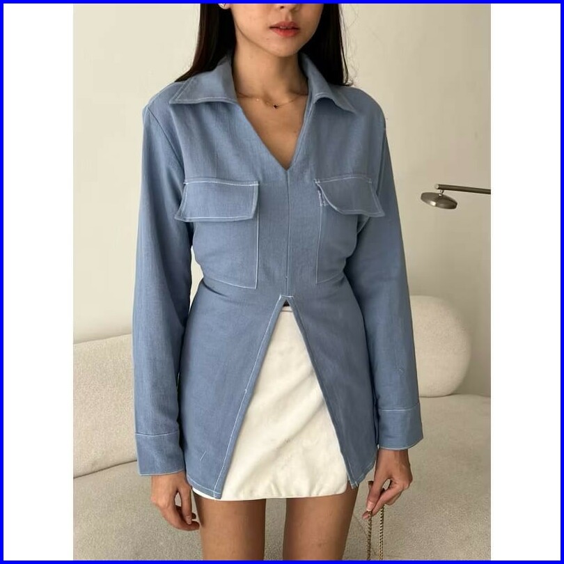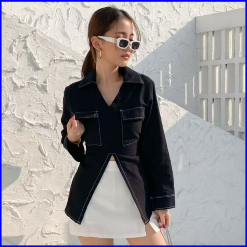 Femes Airin Blouse Atasan Wanita Dewasa Matt Katun Linen Premium Korean Style Casual Daily