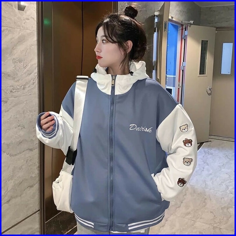 Femes Dairsk Bear Ziper Hoodie Outerwear Wanita Remaja Matt Fleece Sablon Tebal Premium Ootd Korean Style