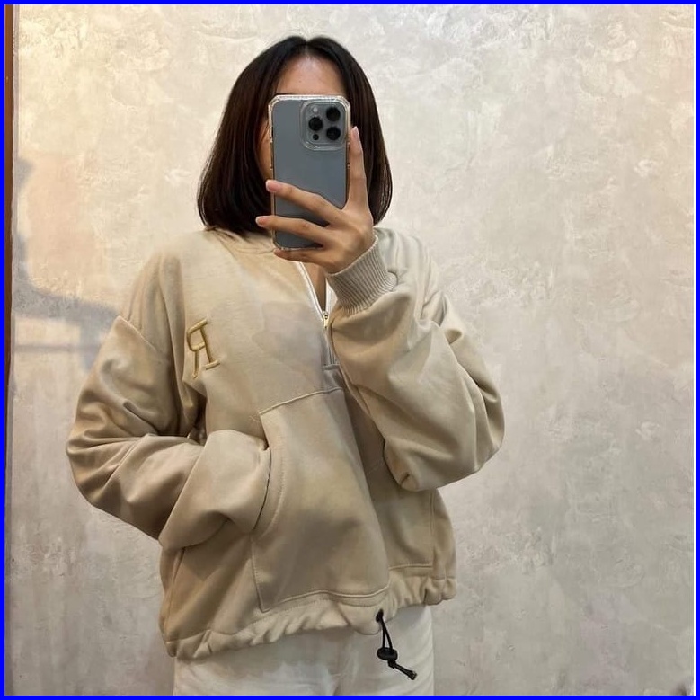 Femes R Zipper Jaket Bordir Sweater Outerwear Wanita Remaja Premium