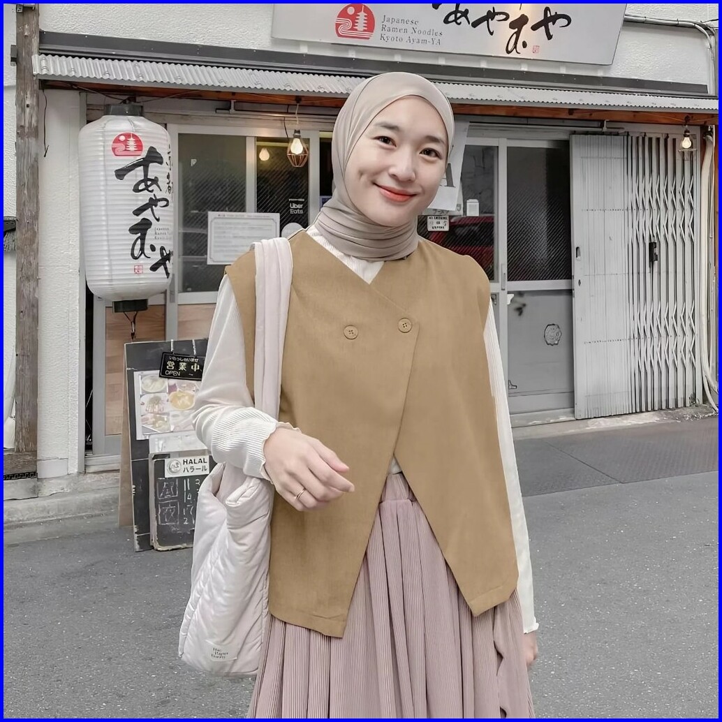 Femes Ophelia Vest Outerwear Allava Wanita Muslim Matt Linen Premium All Size Fit To L Ootd Korean Style