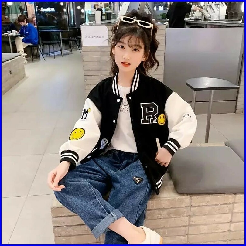 Femes R Jaket Baseball Anak Outerwear Varsity Matt Fleece Tebal Korean Style