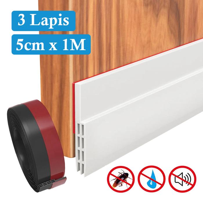 Penutup Celah Bawah Pintu 3 Lapis Lis Karet Penghalang Kecoa Angin Debu Bottom Door Seal 5cm x 1M - Hitam 1M x 5cm