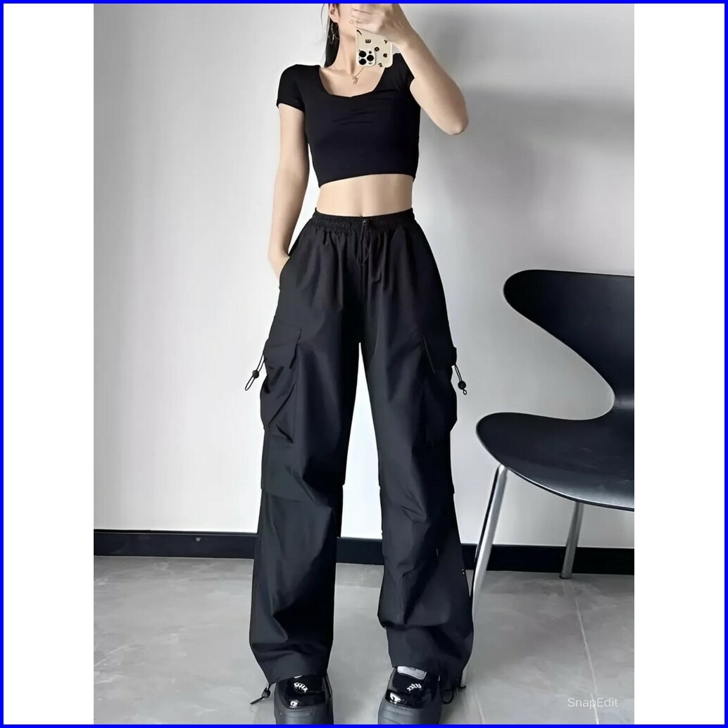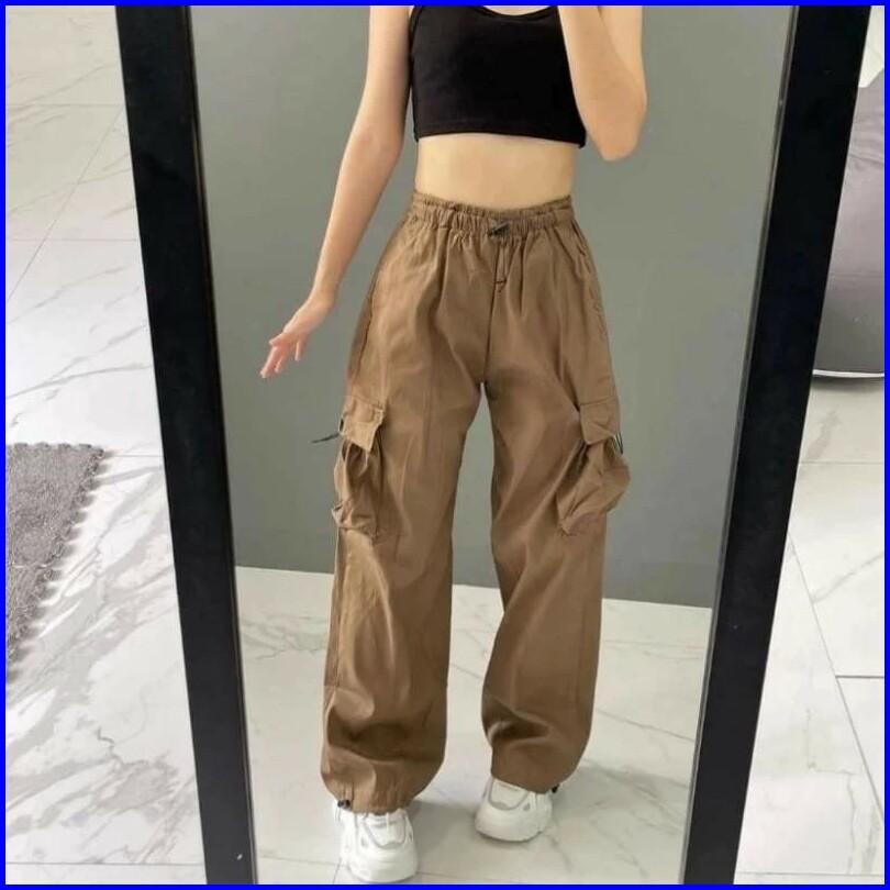 Femes Cargo Pants Celana Wanita Polos Basic Matt Katun Street Tebal Polos Basic Ootd Casual Daily
