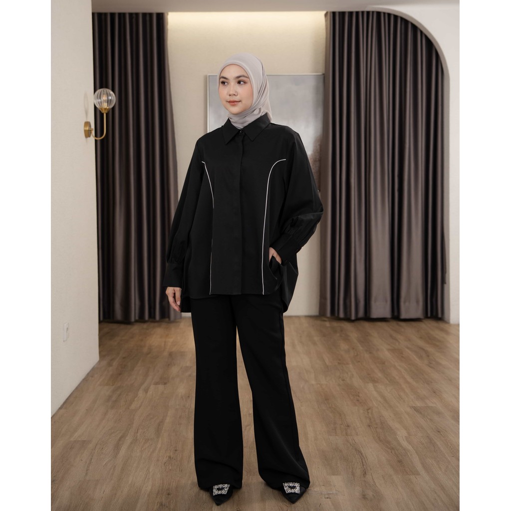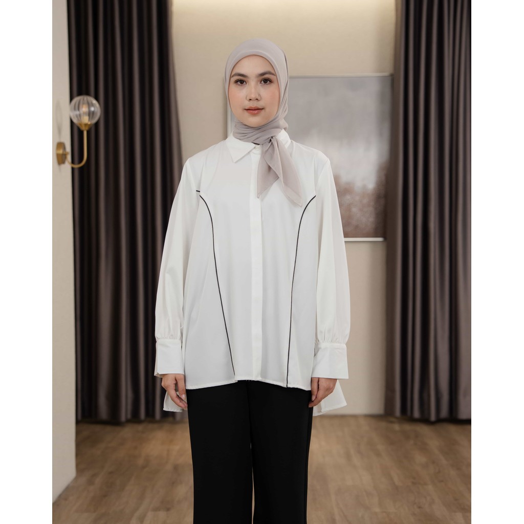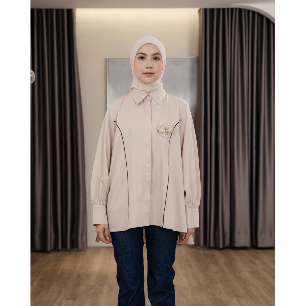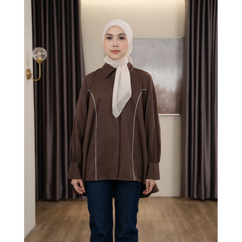 Mayoutfit Kyria Shirt | Kemeja Wanita Basic mahogany Aksen Bordir Line Embroidery Original Best Seller Official Store