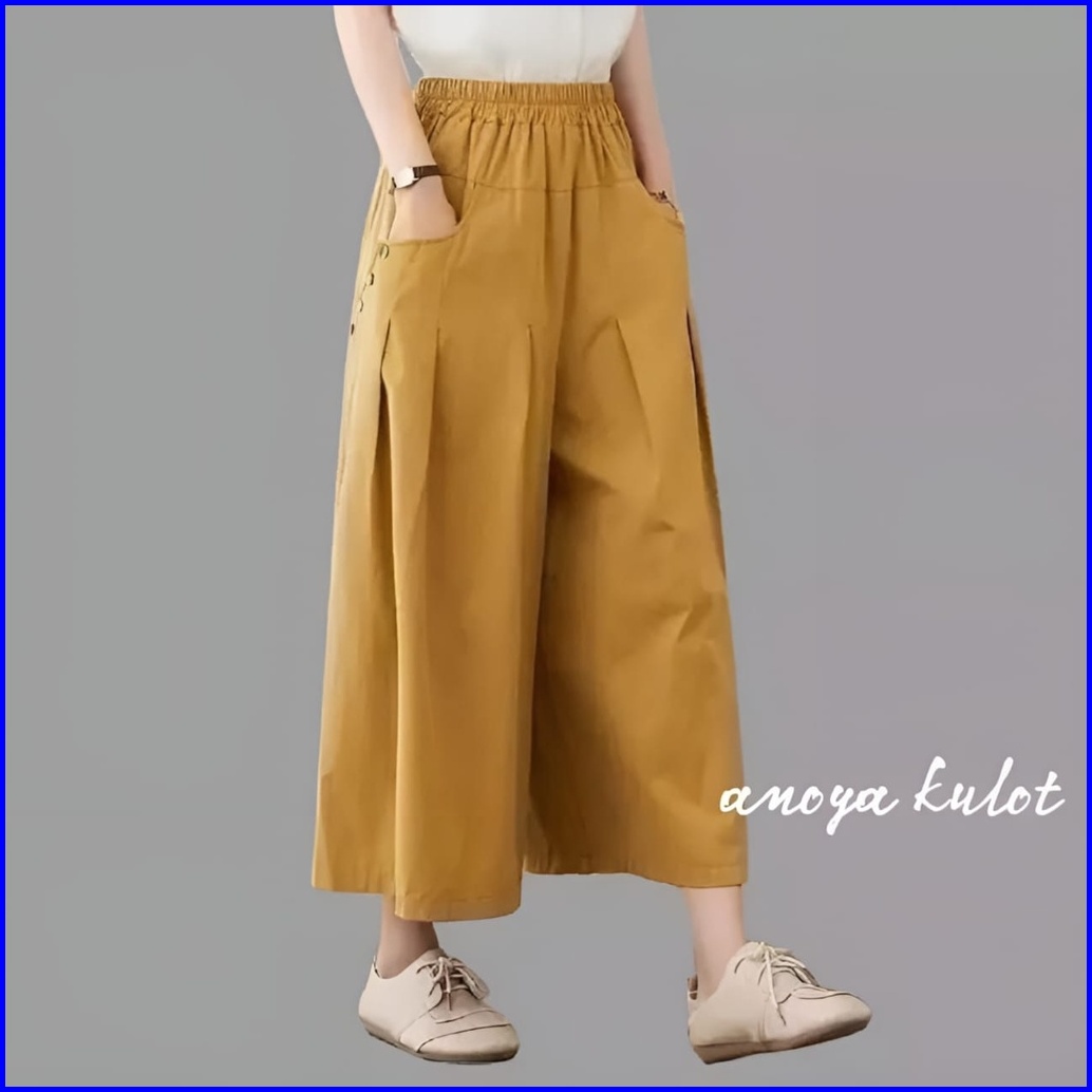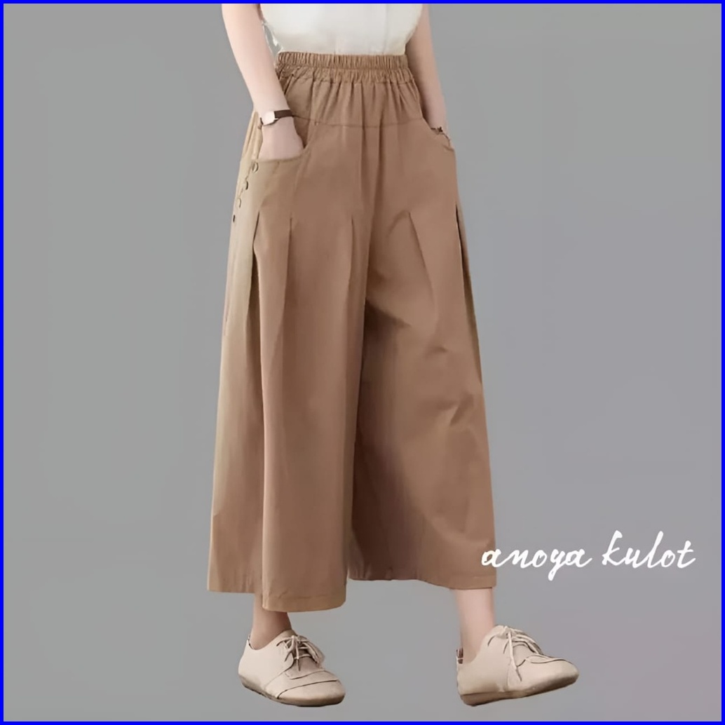 Femes Anoya Kulot Celana Panjang Wanita Muslim Polos Basic Linen Rami Premium