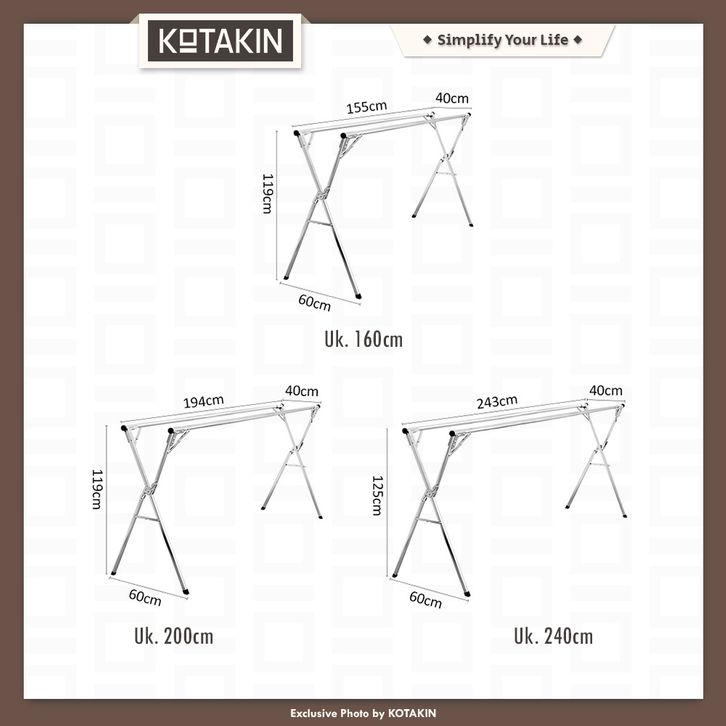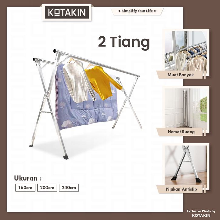 KOTAKIN Jemuran Baju Handuk Lipat Gantungan Pakaian Celana Tekuk Outin Stainless Anti Karat Merek