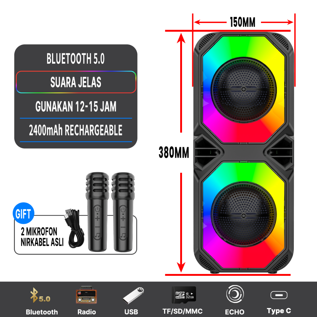 Speaker Bluetooth Karaoke Besar Super Bass With Two free Wireless mic Origina Portable salon aktif bluetooth full bass