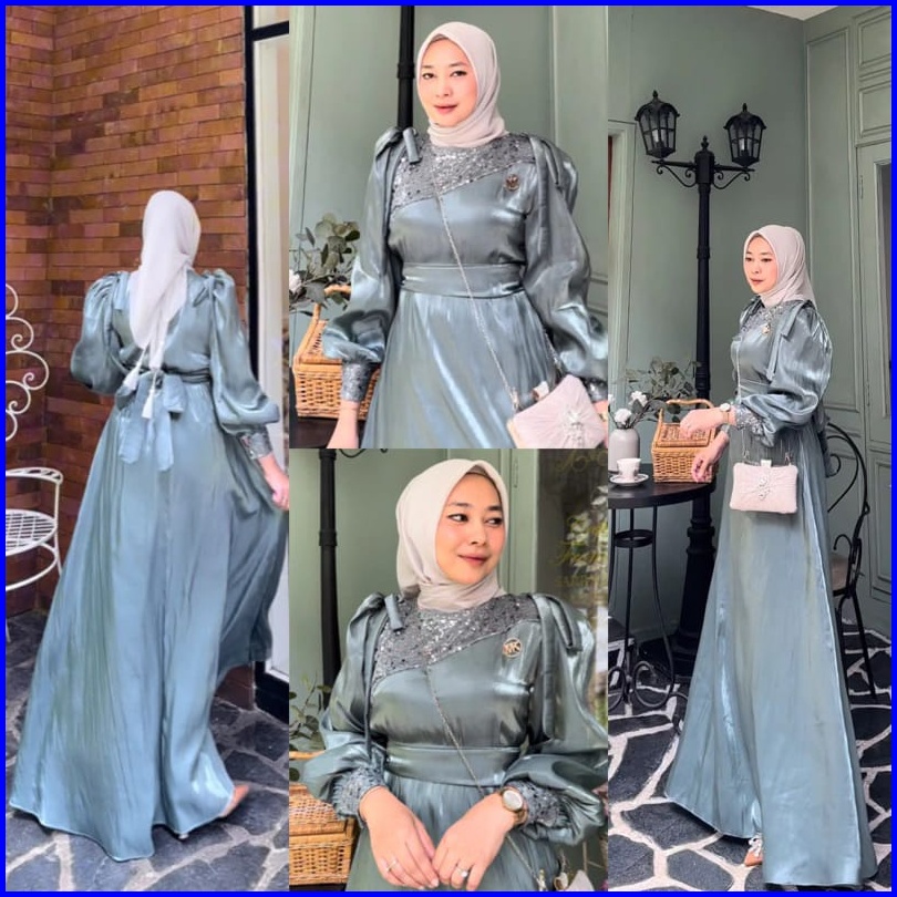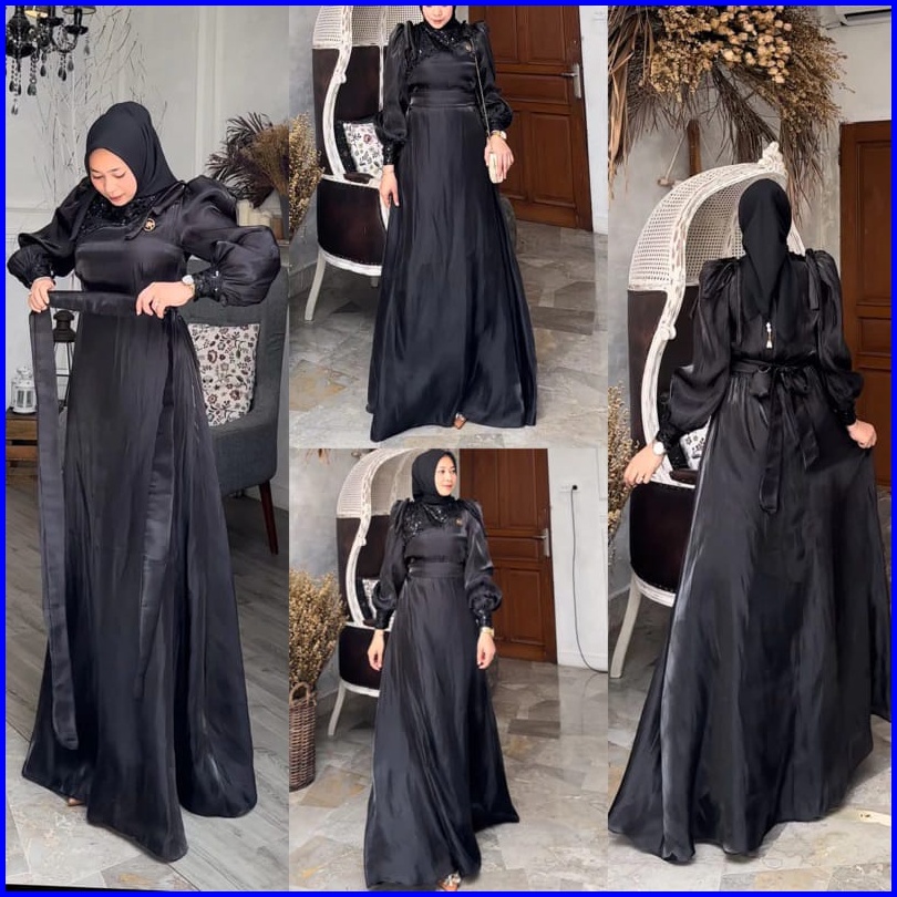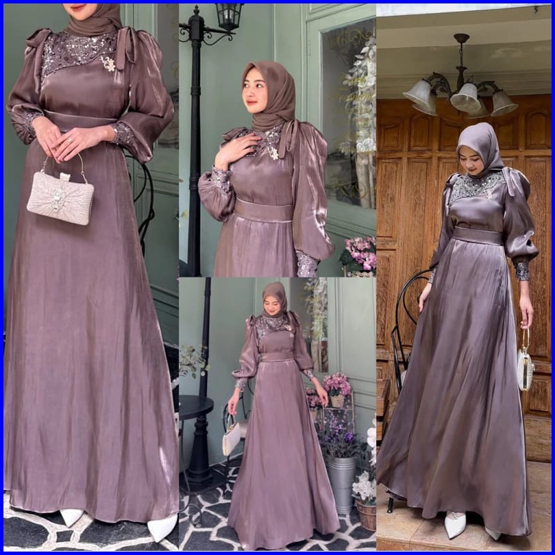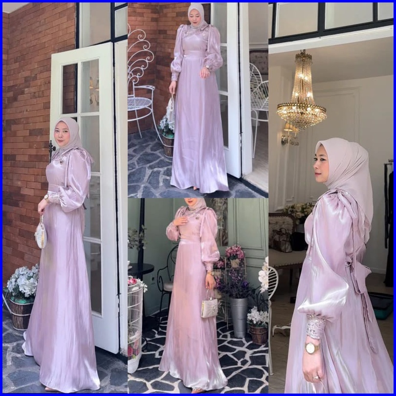 Femes Anabelle Dress Maxy Wanita Remaja Muslim Matt Shimmer Polos Basic All Size Fit To Xl Besar