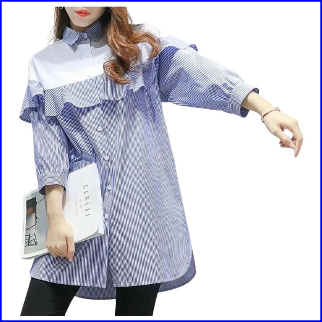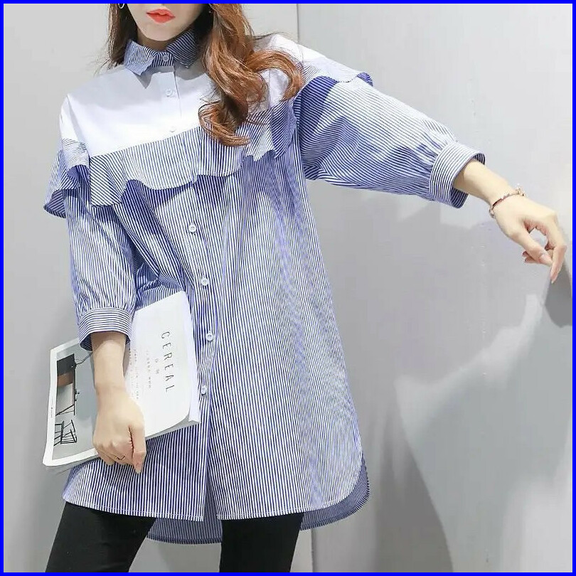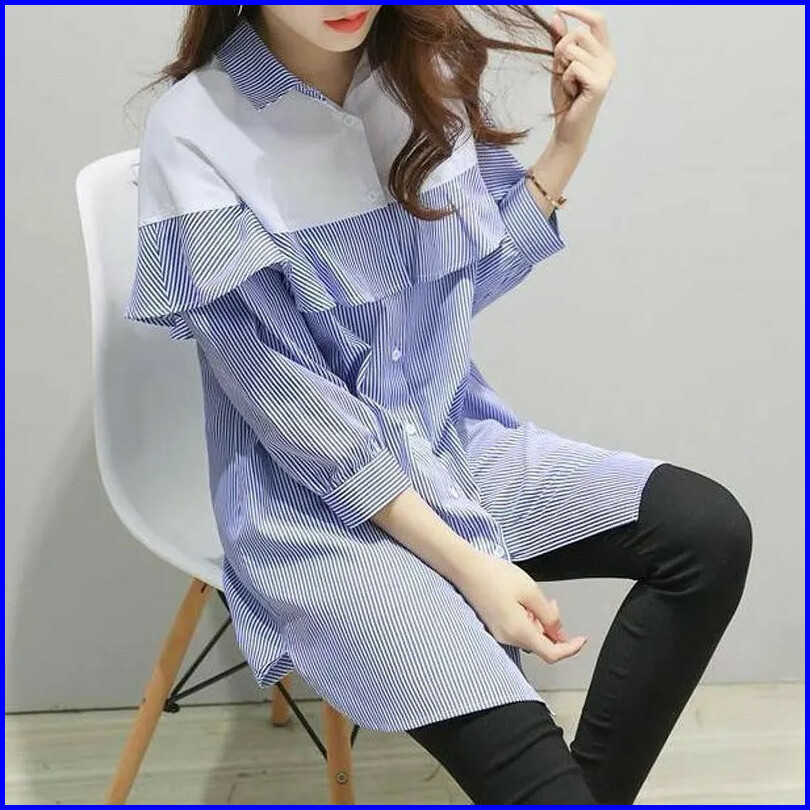 Femes Geovani Kemeja Salur Matt Katun Premium All Size Fit To Xl Besar Ootd Atasan Casual Daily