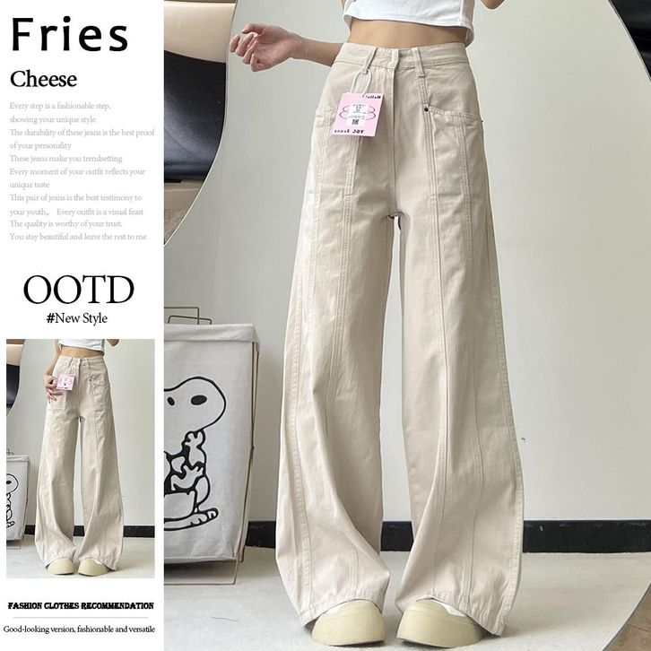 Jeans kaki lebar putih pucat untuk wanita musim semi dan musim panas 2025 celana jeans lurus longgar pinggang t