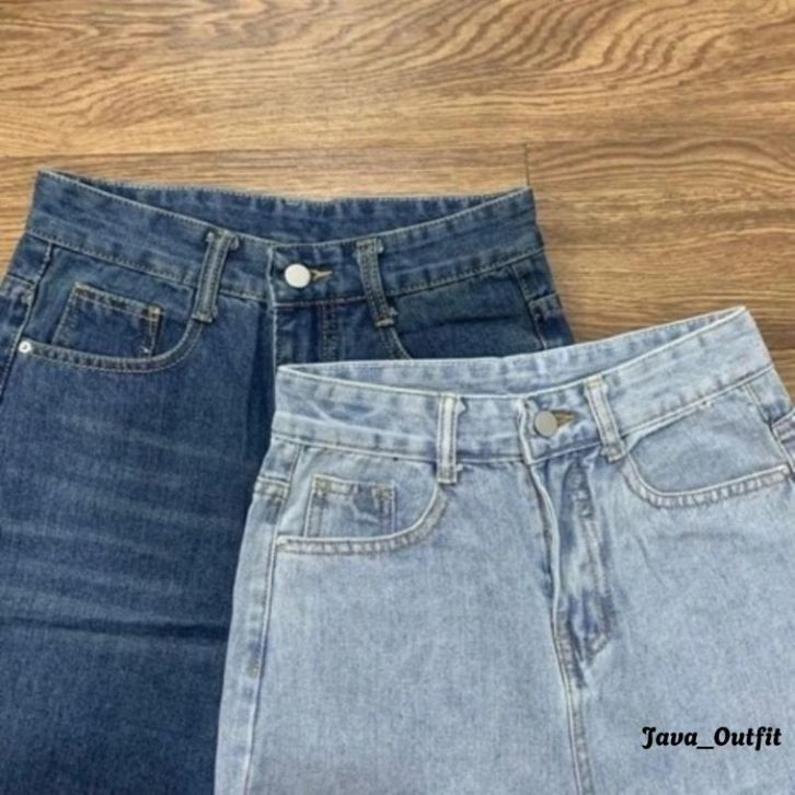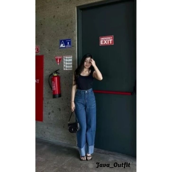 Ja_Outfit_Celana Jeans Wanita E21 Highwaist Loo-se Lipat Bawah Style Premium