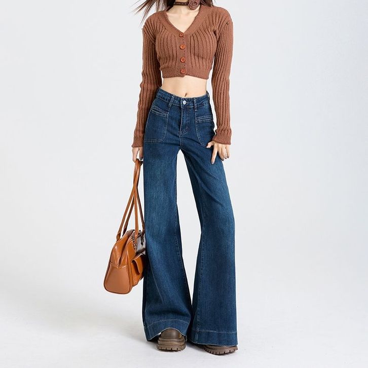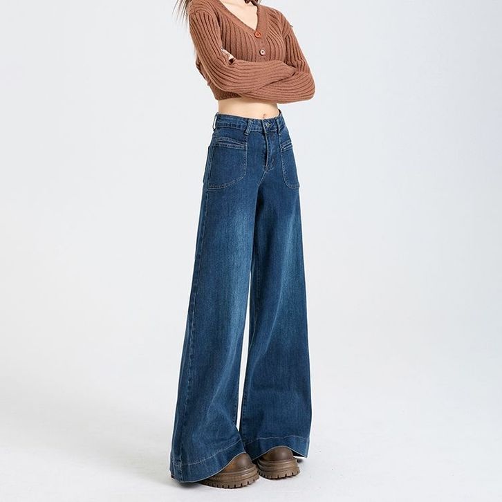 【wanita_id】✅ READY STOCK Biru tua Loose Pants Celana Jeans Panjang Wanita Celana Highwaist Celana Straight OOTD