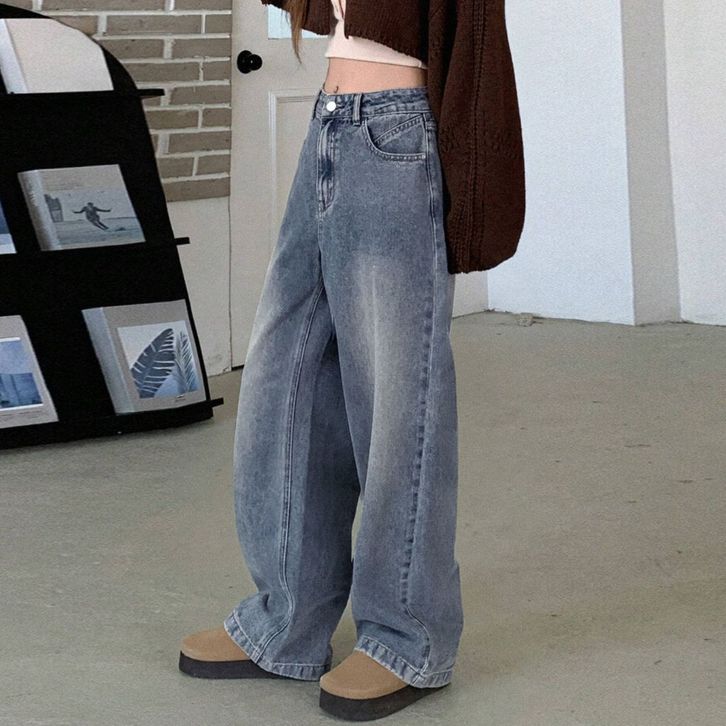Baffel Jeans Loose Wide Leg Jeans Wanita Panjang High Waist Korean Style Casual Fashion Mopping Pants