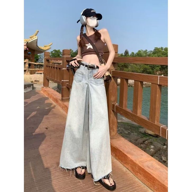 [NANA]Jeans Kaki Lebar Versi Korea Dari Celana Melebar Pinggang Tinggi 0110