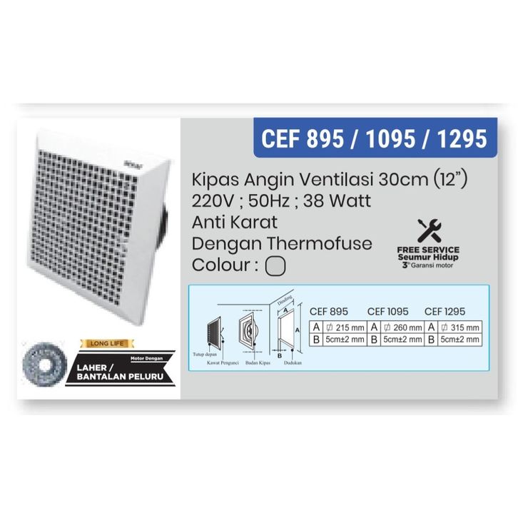 Exhaust Fan Ceiling Sekai Plafon CEF 1295 / 1095 / 895 - CEF1295 CEF1095 CEF895