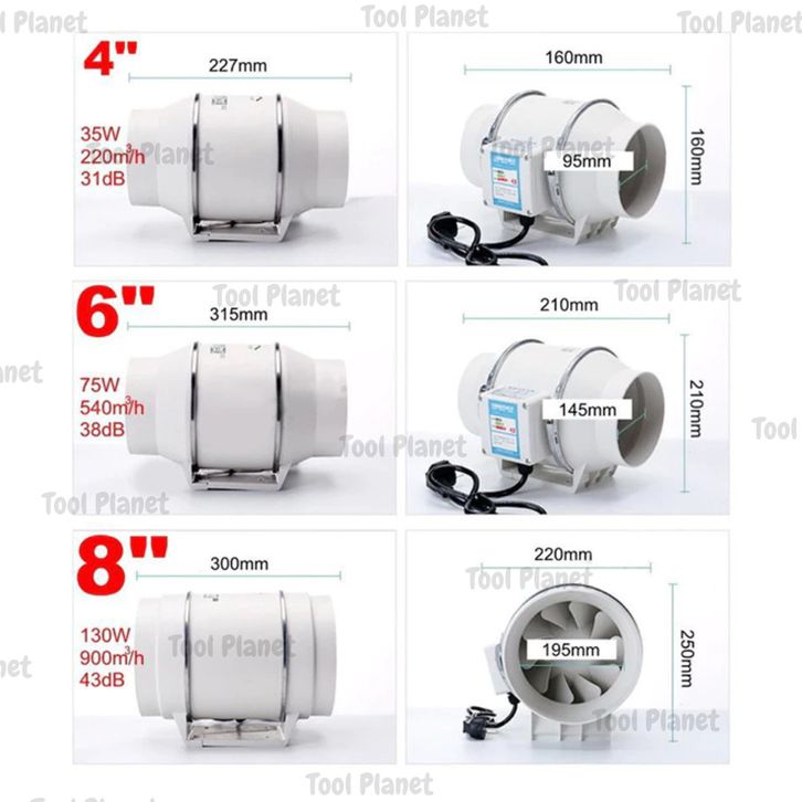 Tool Planet(Garansi 1 Tahun) 4" 5" 6" 8" Kipas Angin Buang Diam Ekstraktor dinding jendela toilet mountable