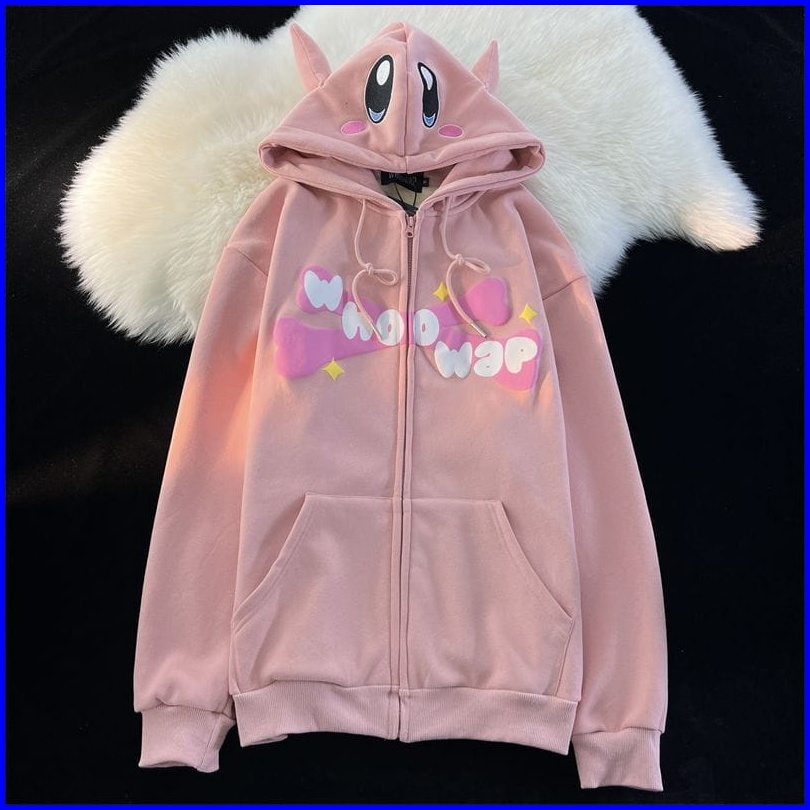 Femes Whoo Wap Jaket Zipper Hoodie Outerwear Wanita Remaja Matt Fleece Sablon Casual Daily
