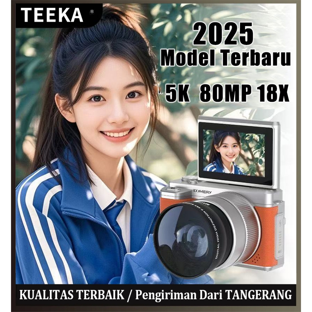 【Dengan Kartu 64GB】TEEKA 80MP Digital Camera Wifi Video 5K 18X Digital Zoom Dengan Dukungan Selfie Koneksi WIFI untuk Ha