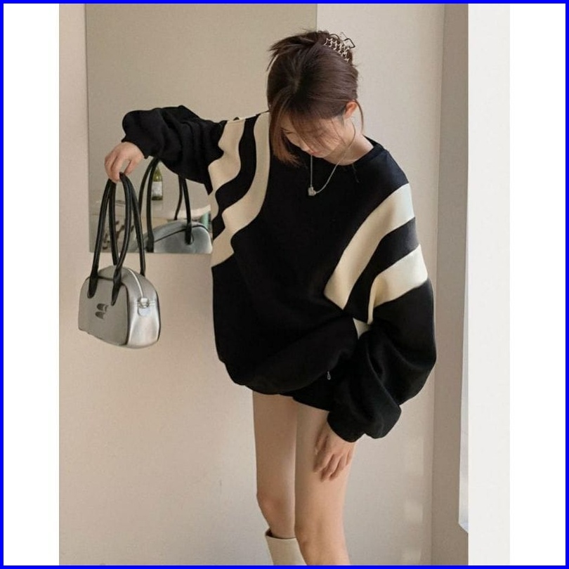 Femes Lines C Oblong Sweater Outerwear Wanita Korean Style Premium