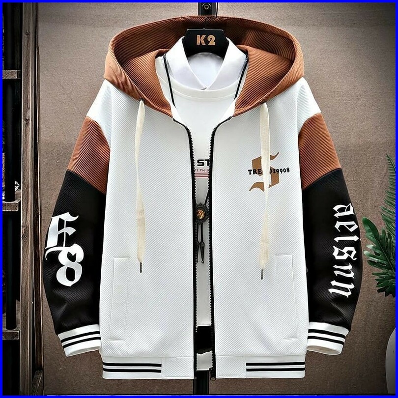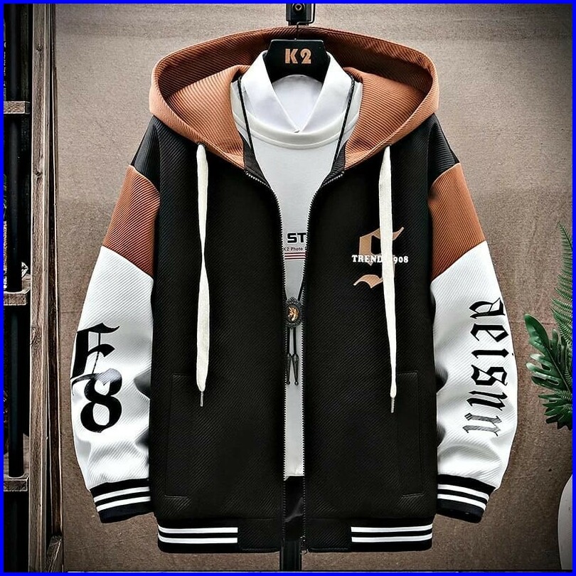 Femes Trend 199908 Jaket Baseball Zipper Outerwear Oblong Crewneck Pria Matt Fleece Sablon Premium