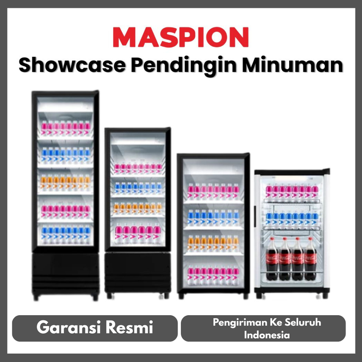 SHOWCASE PENDINGIN MASPION LEMARI ES FREEZER 1 PINTU KAPASITAS 218 180 168 126 LITER DISPLAY RAK WARUNG KULKAS